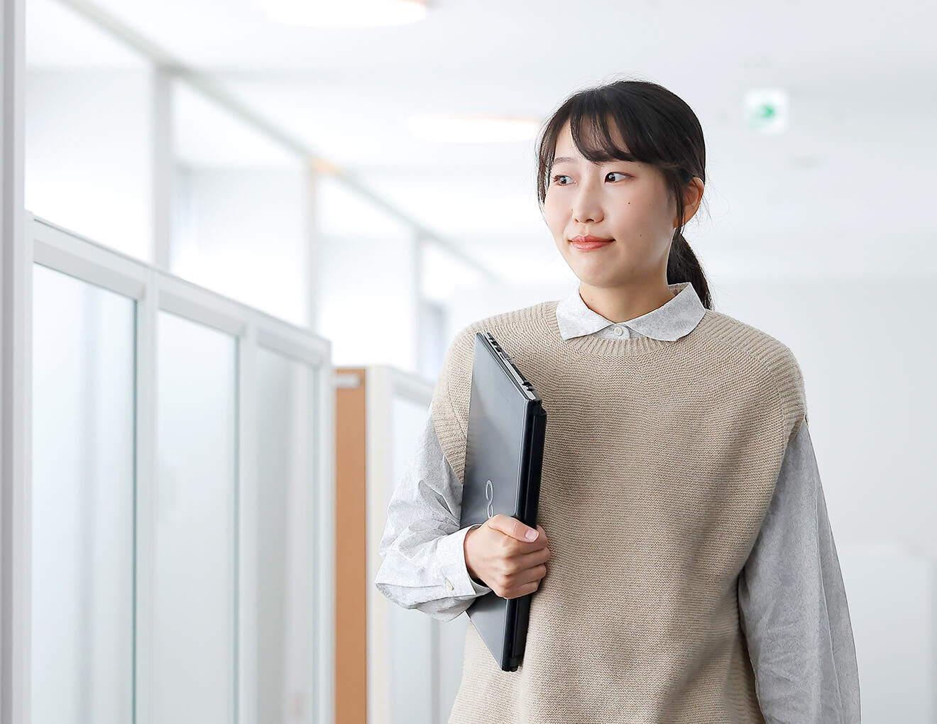 現在、DX推進プロジェクトとして、FAQの導入に携わっています。この取り組みにより、お客さまが当社の鉄道利用の際に知りたい情報をインターネットから簡単に閲覧できるようになりました。データ分析を定期的に行い、より利用しやすいサービスにできるよう尽力しています。運輸部門の仕事の魅力は、自分の仕事の結果が明確に見えるところです。FAQ等の利用はお客さまの姿を直接見ることはできませんが、サービスの利用者増加や、アンケート等を通じての評価を目にすることでやりがいを感じます。