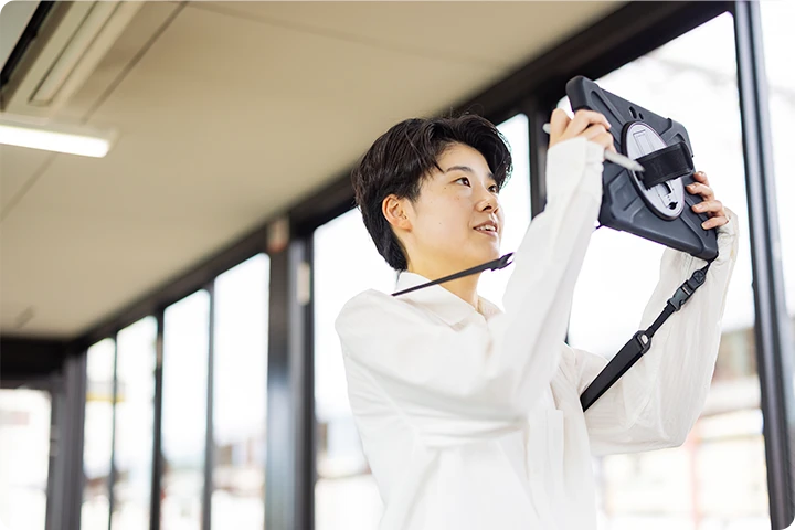 また、待合室のリニューアルなど駅関連の改修工事も担当しており、バリアフリーの観点から問題がないか確認しながら、関係部署と調整して安全に工事を進行します。デザインや仕上げ材の検討にもこだわり、お客さまが地域性を体感できる待合室づくりを目指しています。